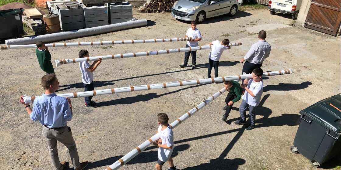 La première étape symbolique est l’érection des mâts des couleurs, qui a eu lieu le mardi 4 Octobre. Avec l’employés municipaux, nous en avons dressés cinq, en haut desquels flottent aujourd’hui fièrement des drapeaux, marqueurs de notre identité. Ils portent les couleurs de l’Europe, de la France, de la région administrative de la Nouvelle Aquitaine, de la région historique de la Charente Limousine et du Cours Aliénor d’Aquitaine, au portrait stylisé de cette étonnante reine de France. Ils sont le symbole fort de notre installation sur ce site et de notre appartenance à un territoire, à une culture, à un héritage, dont notre école est un des maillons de transmission et dans lesquels elle prend son sens.